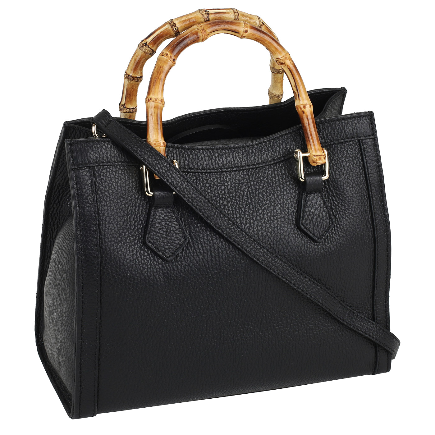 Кожаная сумка с бамбуковыми ручками
