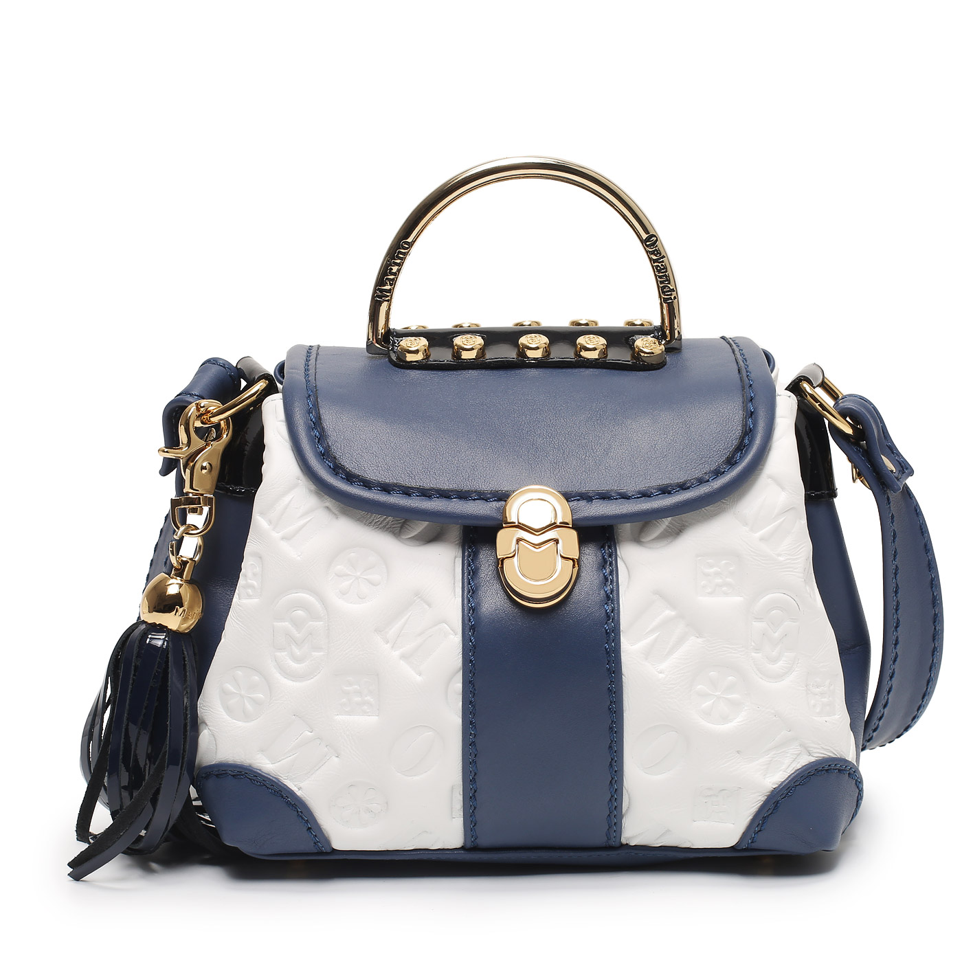 Кожаная сумка Marino Orlandi 1957_white/g.blu_pc - 2000558739092 белый натуральная кожа 20 x 17 x 14 Цена 46680 руб. купить в интернет-магазине PanChemodan.ru в Красноярске